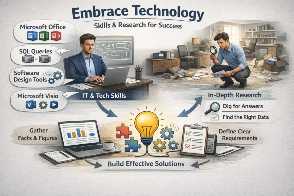 Let’s investigate the abilities a business analyst genuinely needs to succeed at work. First off, a business analyst is a person who examines how a department or functional unit operates to create an all-encompassing systems solution to the issue. Except on weekends, they rarely breathe fire or repair flat tires.