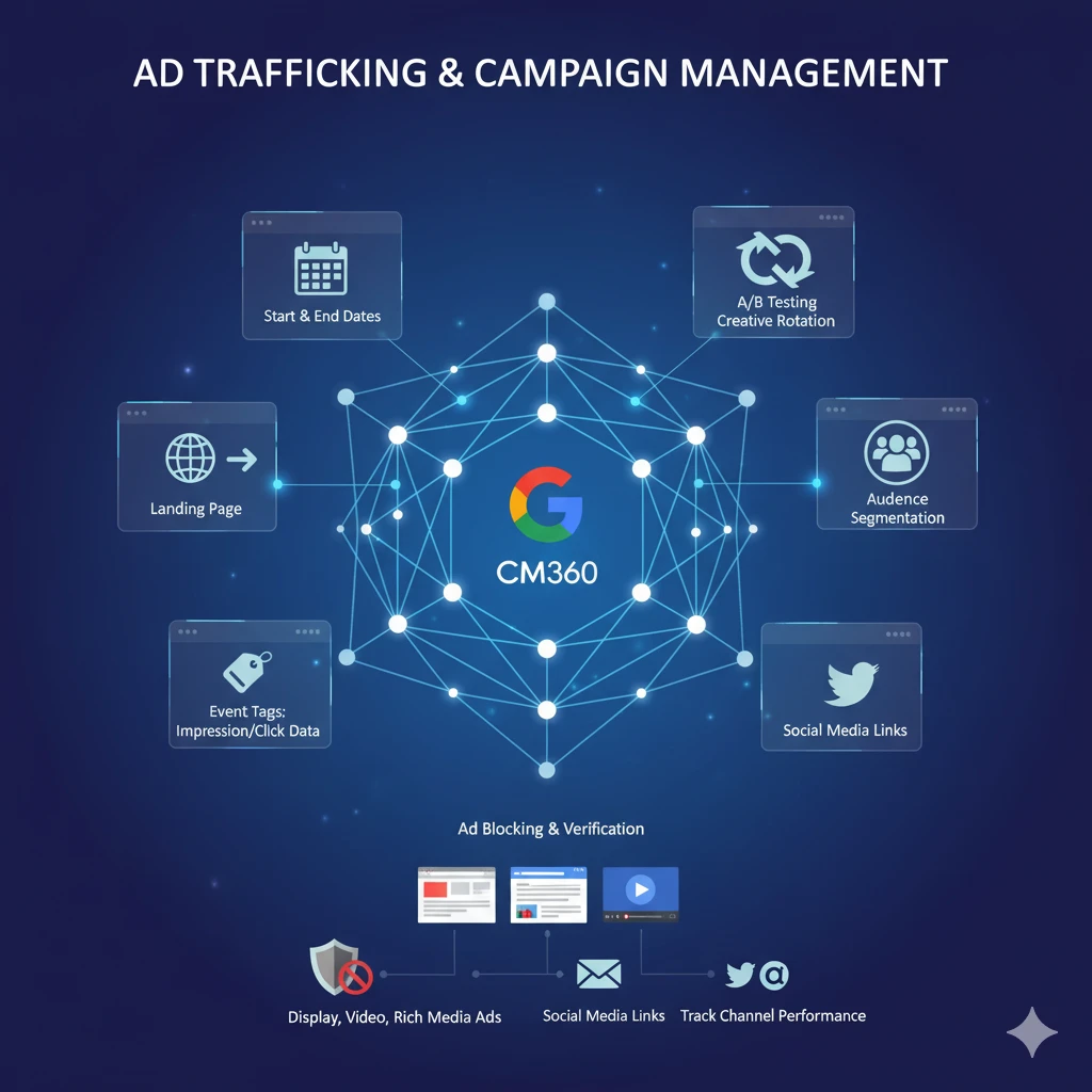 Campaign Manager is a full-featured ad server that can deliver display, video, and rich media advertisements through ad tags exchanged with publishers, networks, or your DSP (DV360).