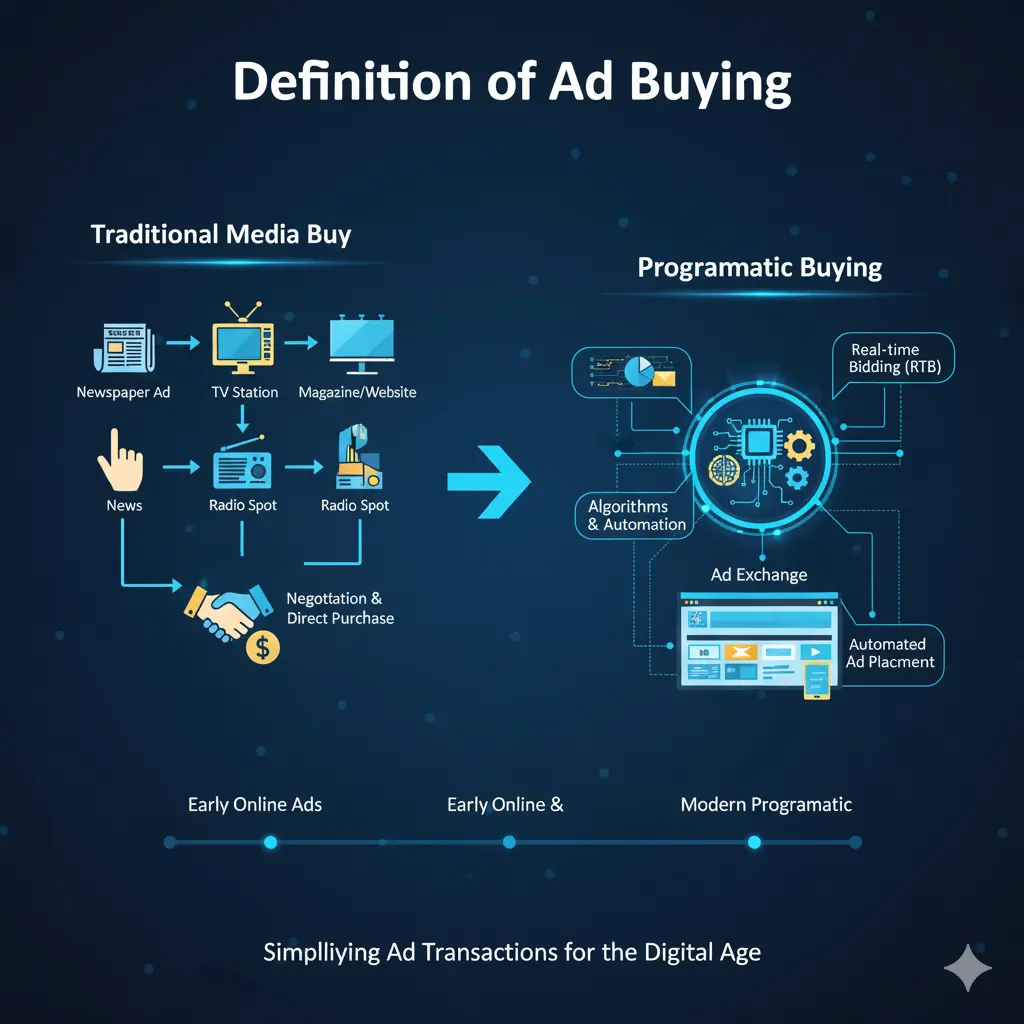 A media buy is when you buy advertising from a media company like a television station, newspaper, magazine, blog, or website. It also comprises ad price and placement negotiations, as well as research into the finest new ad placement venues.