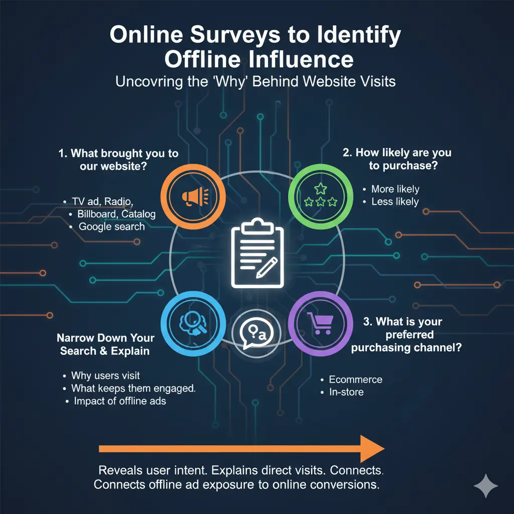 Online surveys remain one of the most accurate ways to understand user intent and the role of your offline marketing campaign.