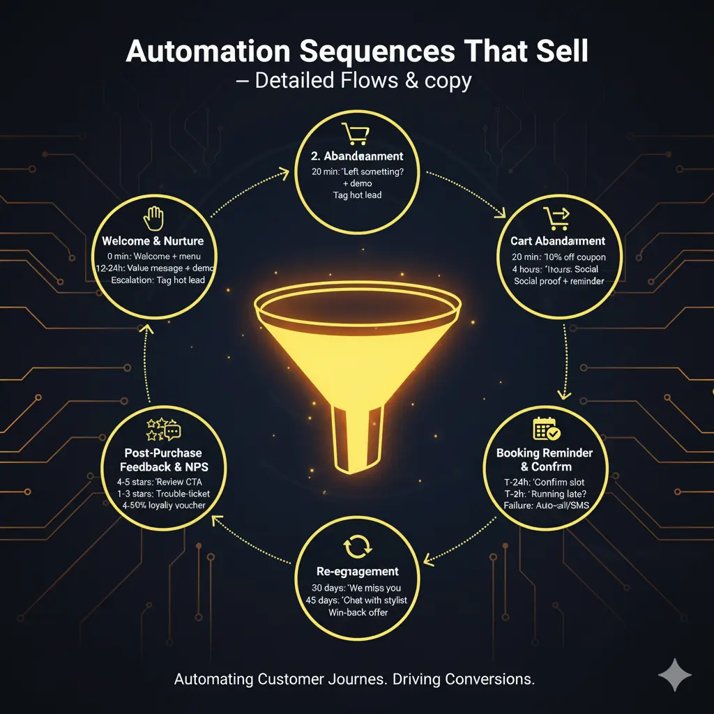 Below are battle-tested sequences. For each, I’ll provide triggers, timing, messages, and escalation rules.