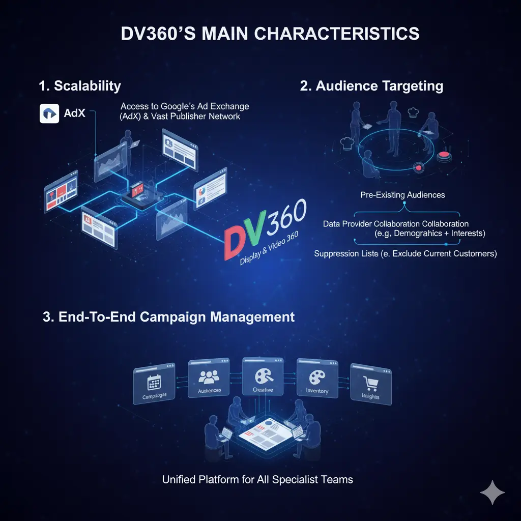 DV360 provides a variety of capabilities to assist advertisers in reaching the proper audiences and improving campaign management. This includes the following: