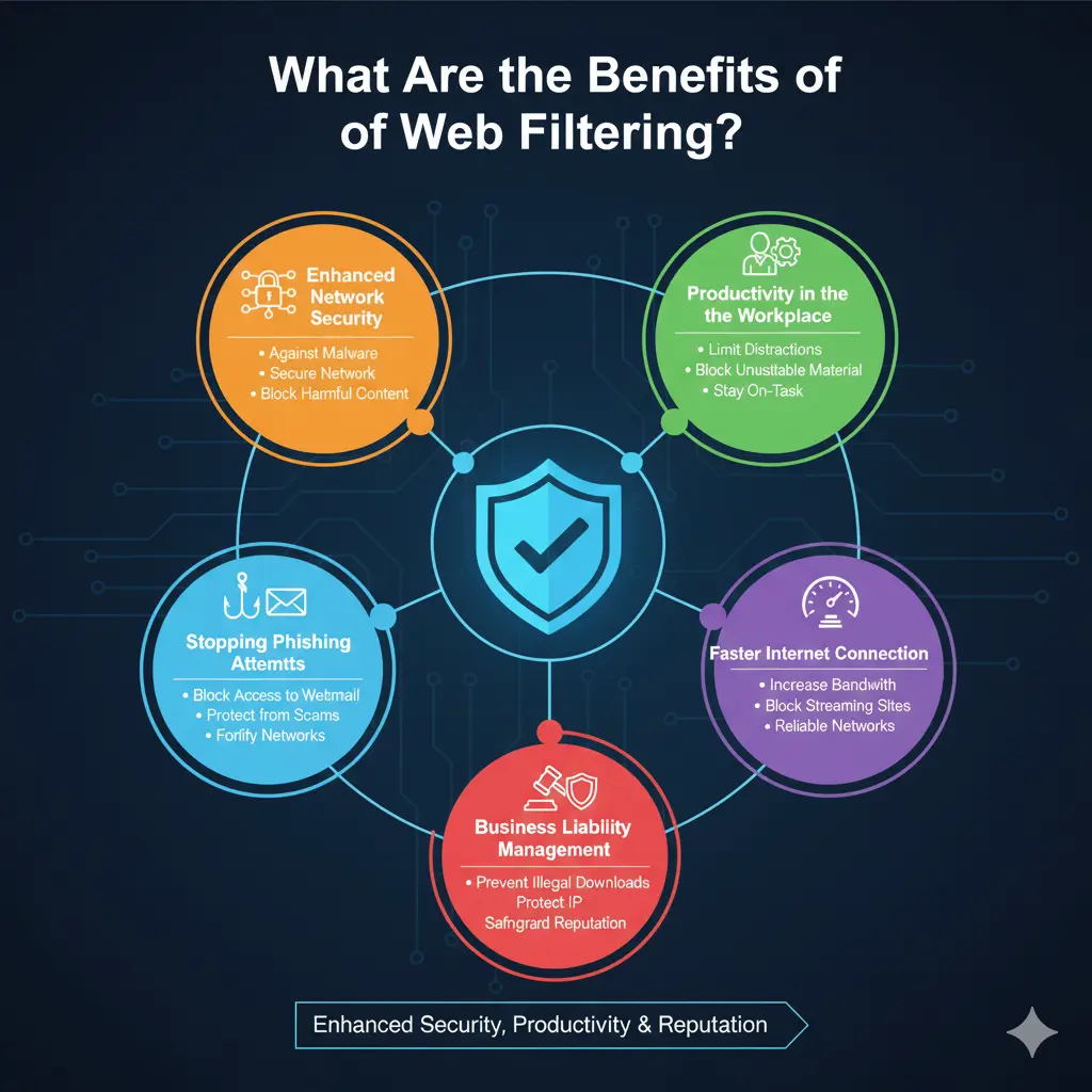Web filtering has many benefits for businesses, one of which is the ability to prevent access to sites that may contain content that violates intellectual property or other laws. By restricting access to inappropriate content, you may protect your company’s reputation online.